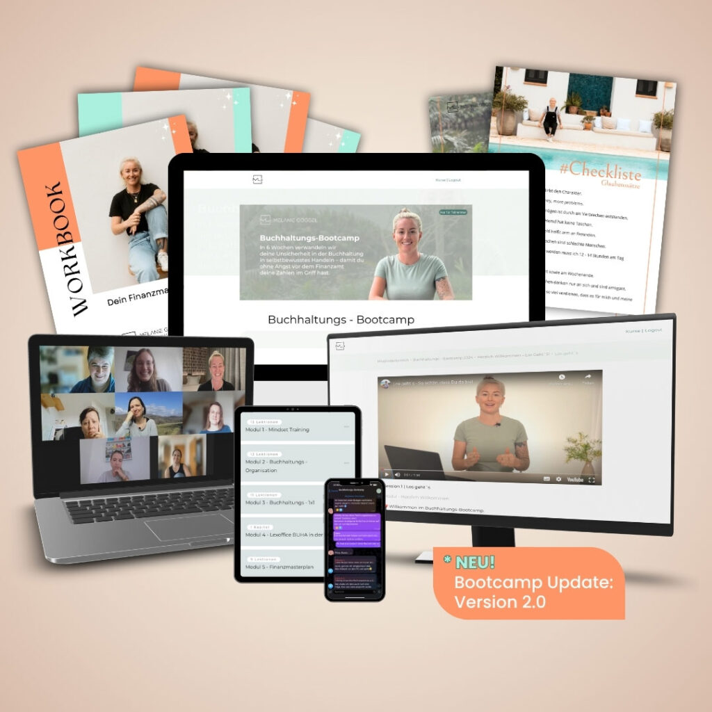 Das Buchhaltungsbootcamp bei Melanie hat für mich alles verändert! In kürzester Zeit habe ich meine Angst vor der Buchhaltung verloren – und mittlerweile habe ich sogar richtig Lust, meine Buchhaltung selbst zu machen. Endlich habe ich alles im Blick, fühle mich sicher und spare durch die neu gewonnene Klarheit auch noch ordentlich Kosten.